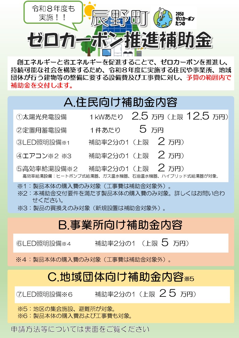 令和8年度辰野町ゼロカーボン推進補助金チラシ(PDFファイル:341.1KB)