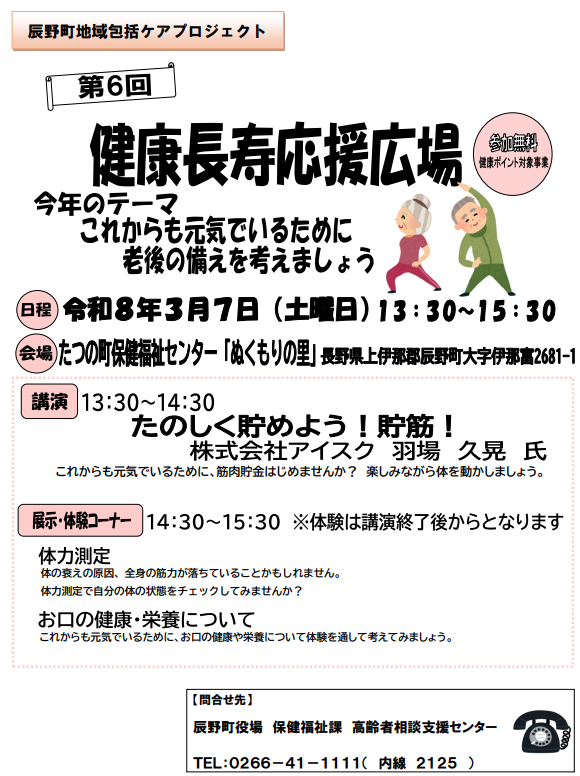 令和7年度の健康長寿応援広場の日程が決まりました。