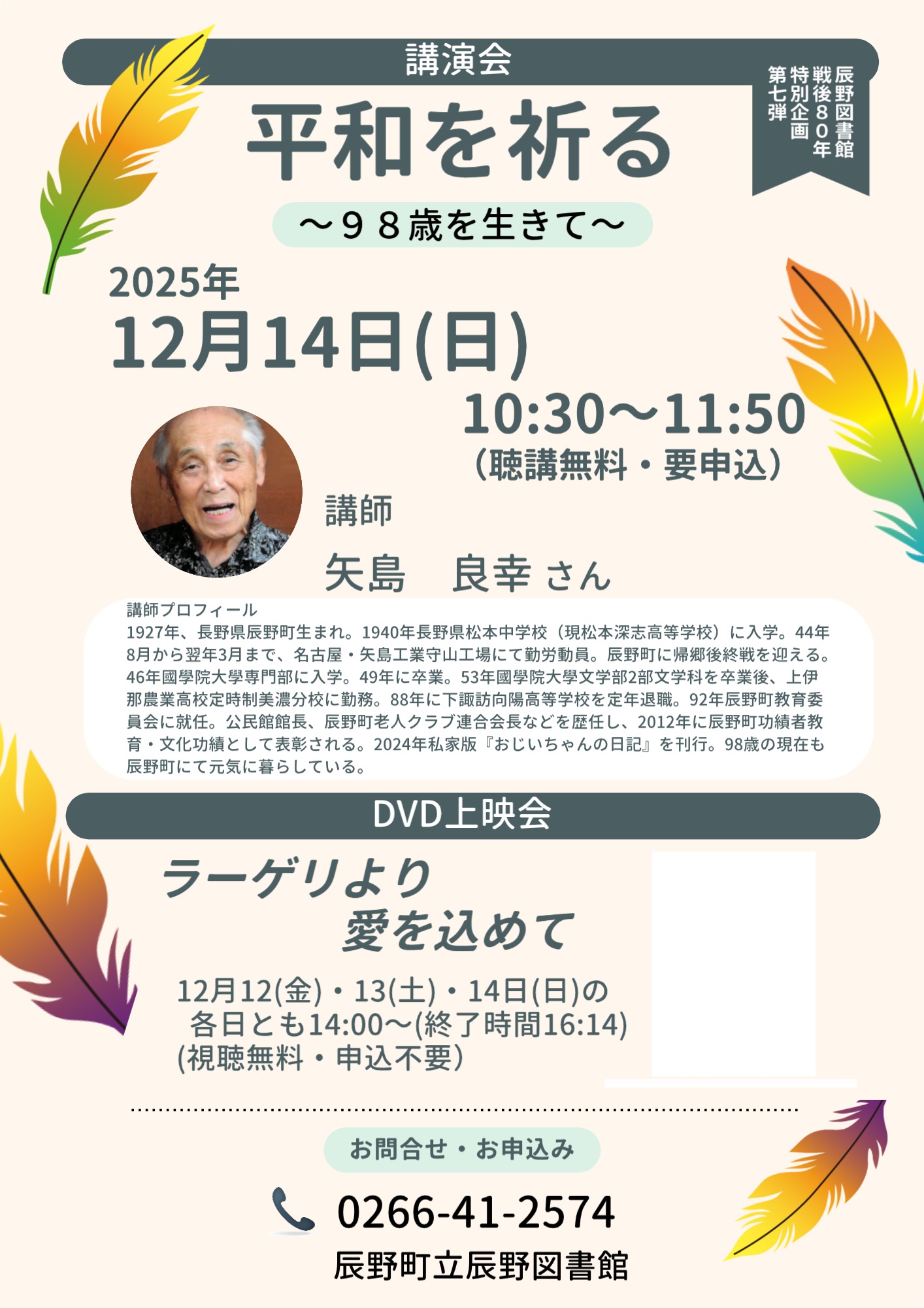 矢島良幸さん講演会『平和を祈る~98歳を生きて~』