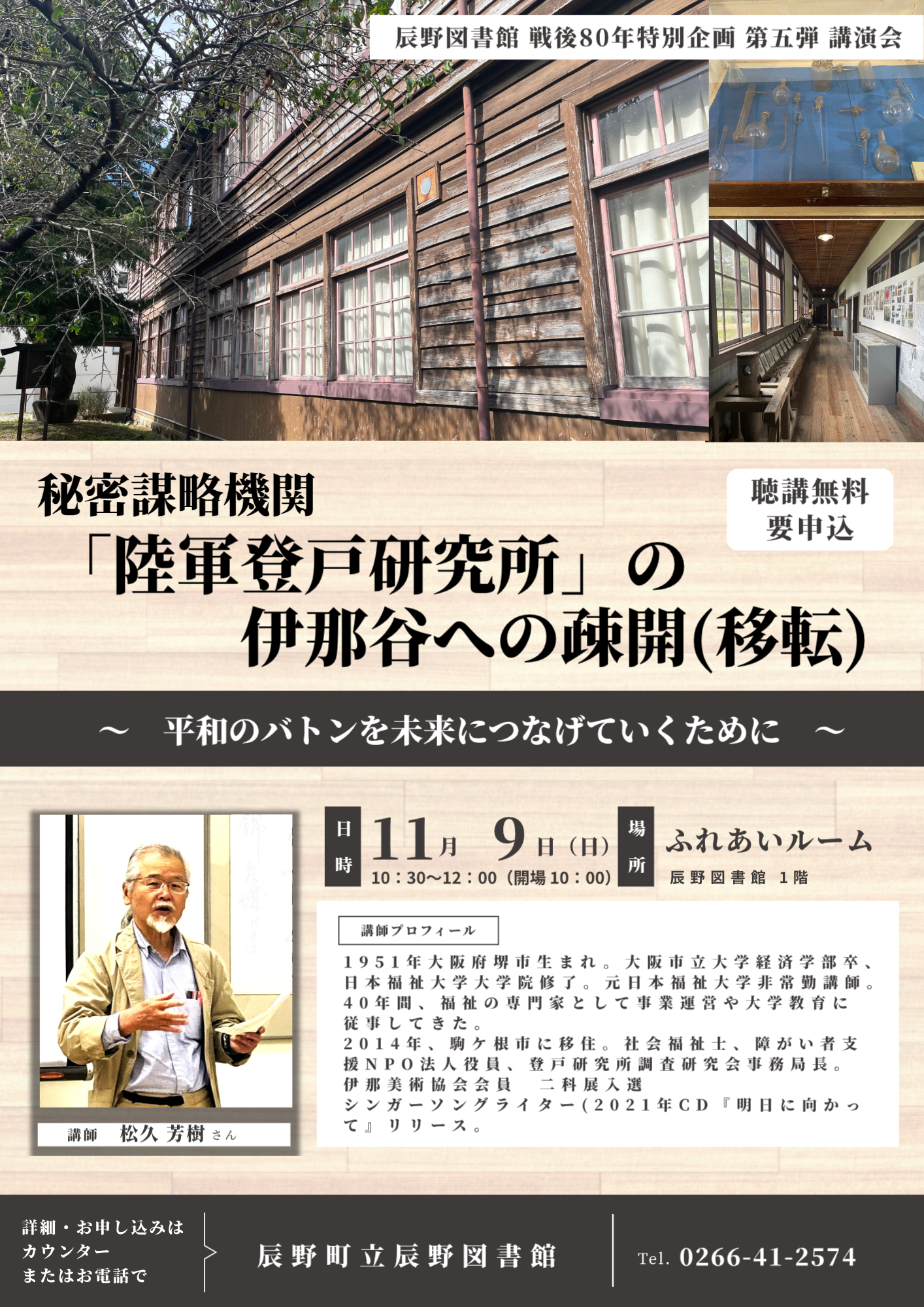 松久芳樹さん講演会『秘密謀略機関「陸軍登戸研究所」の伊那谷への疎開(移転)~平和のバトンを未来につなげていくために~』