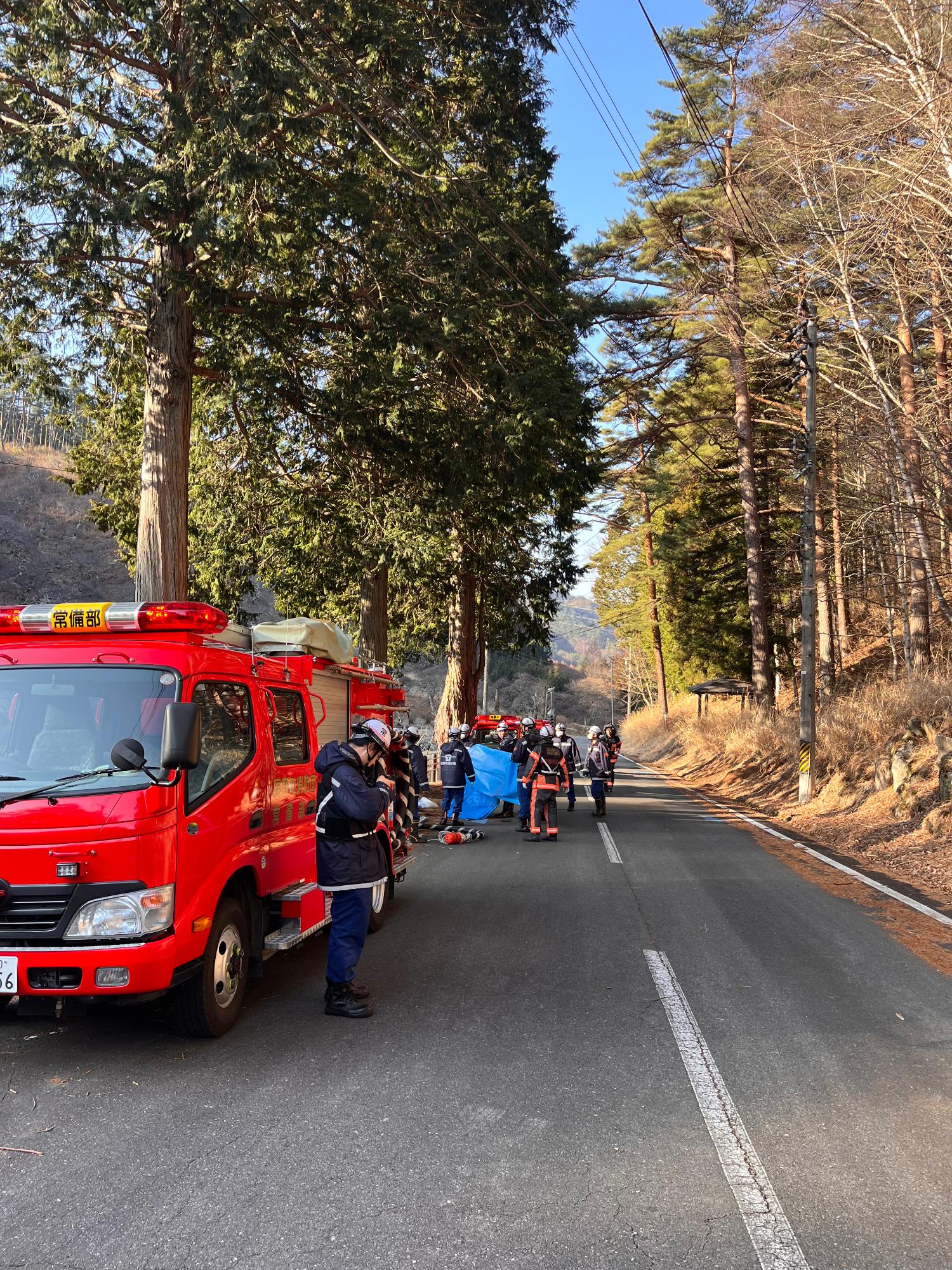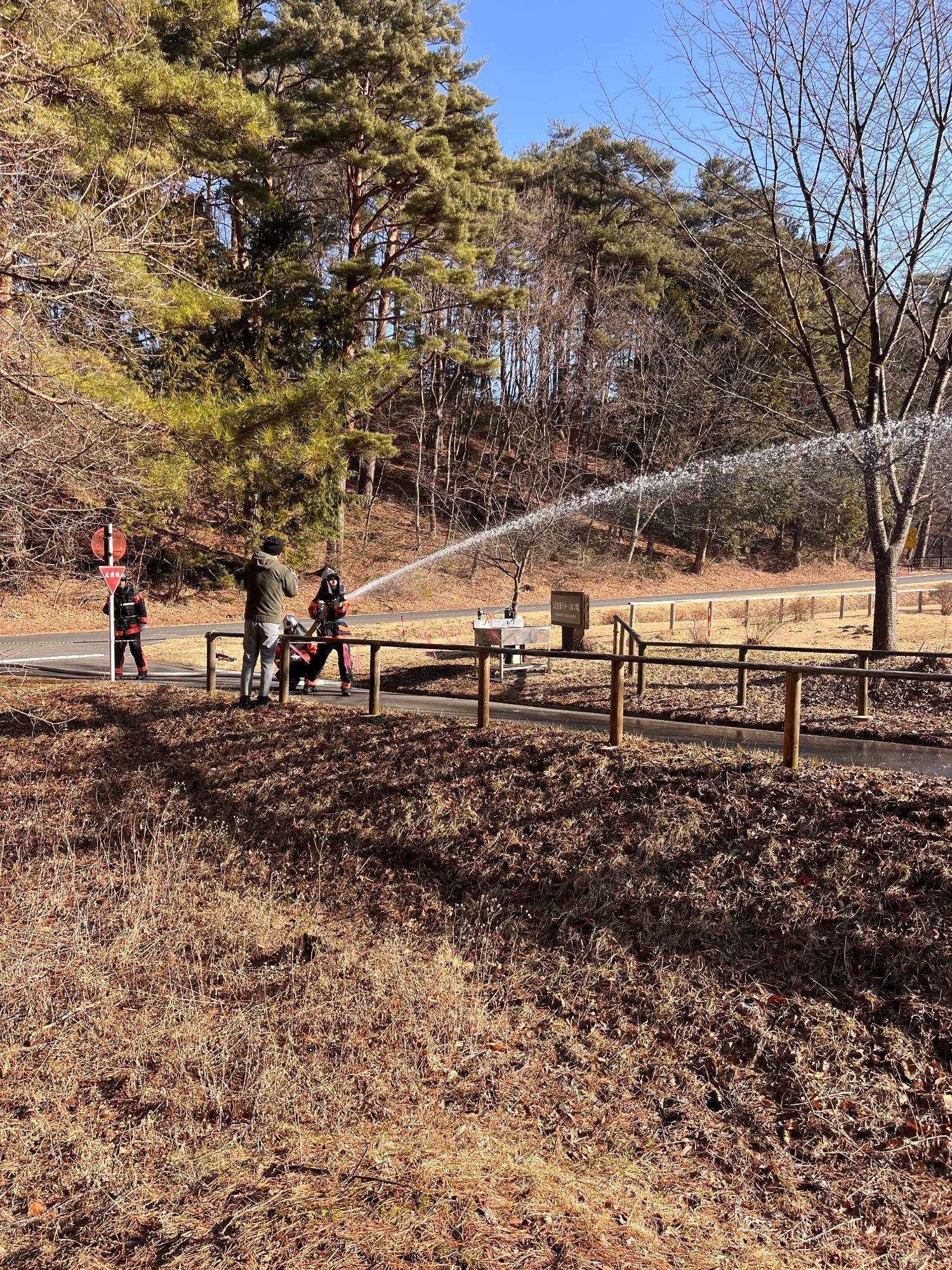 近年、全国で林野火災が続発しており、延焼防止に繋がる初動対応の迅速さが大事となる中で、各分団の連携により素早く水を出す訓練にもなりました。